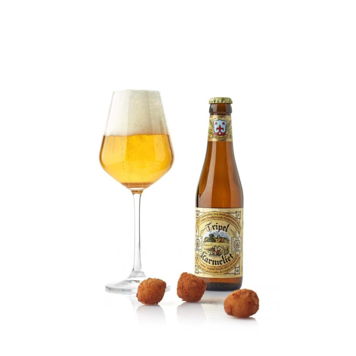 Questa crocchetta è aromatizzata con la famosa birra belga Birra Tripel Karmeliet dal colore giallo dorato prodotta con triplo cereale (orzo, frumento e avena). I sentori olfattivi principali sono quelli del lievito, note fruttate (limone), spezie e fiori (miele).