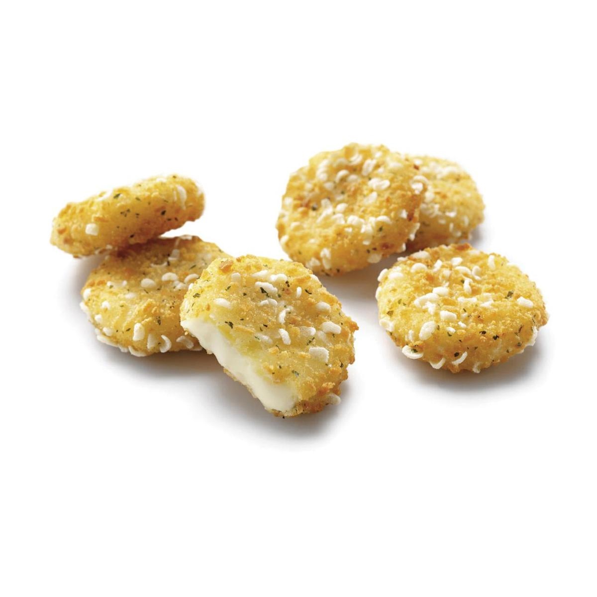 Deliziosi bocconcini di formaggio di latte vaccino, ricoperti da una panatura croccante. Dal gusto delicato e morbido, è perfetto come finger food o può essere aggiunto all'insalata per un piatto appetitoso!