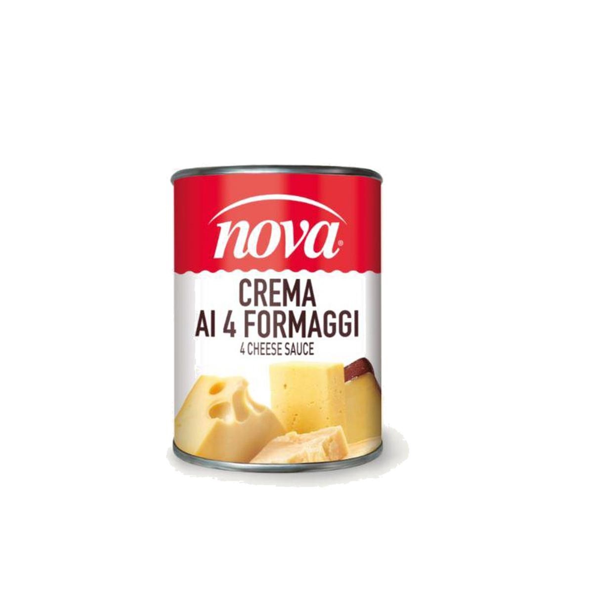Crema ai 4 formaggi in latta da 420 gr. Ingredienti: Acqua, Burro, Formaggio Fontal 12%, Formaggio Italico 9%, Formaggio Grana Padano 7,5% (Contiene: Lizosima Proteina Dell'Uovo), Formaggio Emmenthal 4,5%, Proteine Del Latte, Sali Di Fusione: E331, E452. Può Contenere Tracce Di Pesce, Soia, Frutta A Guscio (Anacardi), Sedano, Senape. Conservazione: Conservare in luogo fresco e asciutto. Dopo l'apertura conservare il prodotto in frigorifero e consumare entro 5 giorni.