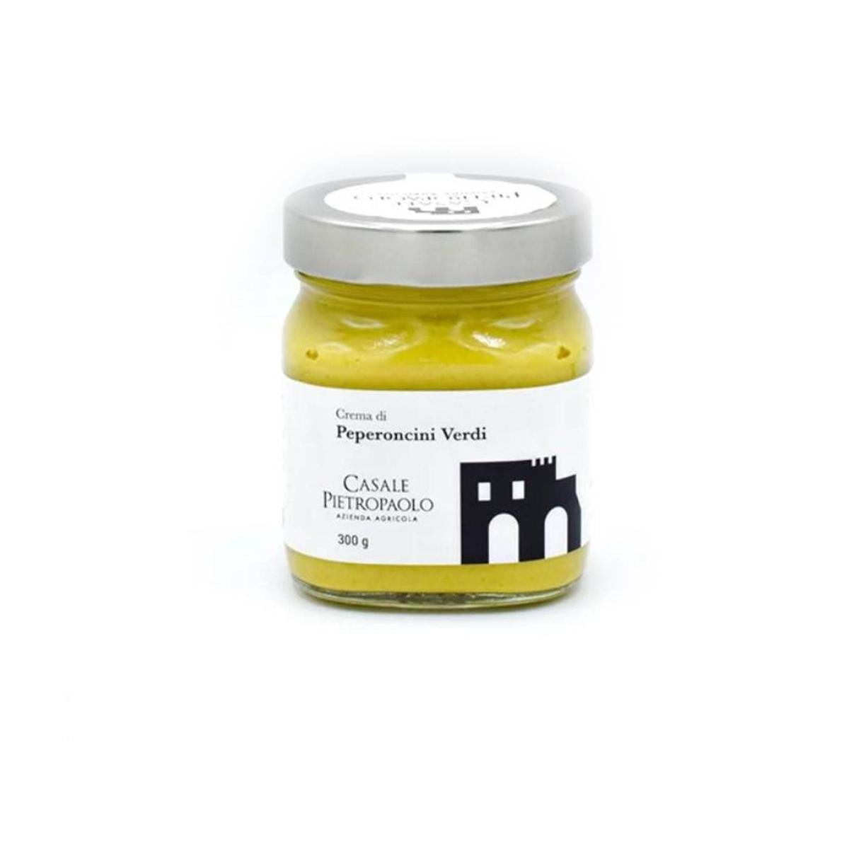 I Peperoncini verdi (detti di fiume o friggitelli) sono una prelibatezza dell’ arte culinaria campana, sono peperoni con frutti di forma allungati, affusolati, con l’estremità appuntita, si consumanodi colore verde (frutto immaturo), dal sapore dolce e l’aroma intenso, famosi per essere mangiati fritti in padella. Raccolti a mano vengono lavati e fatti soffriggere in olio e aglio, una volta cotti sono frullati, la crema ricavata viene confezionata e pronta per essere gustata.