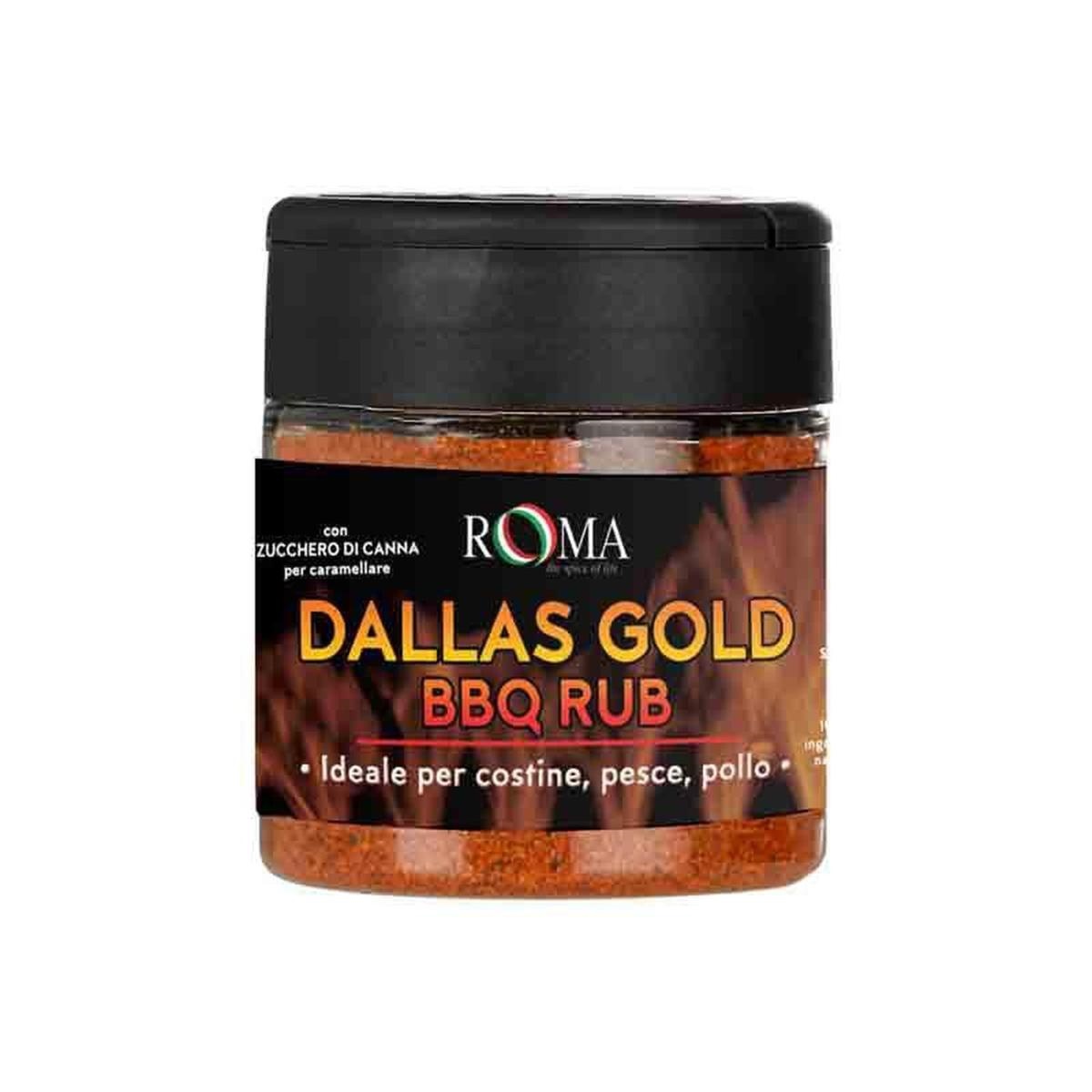 Dallas Gold BBQ è un Rub dal colore dorato di origine texana. A base di senape, con note piccanti in sottofondo, è perfetto per manzo, ma anche per pollo, pesce e costine. Ingredienti: sale rosa, senape, paprika, pepe bianco, zucchero di canna, pepe nero, aglio.