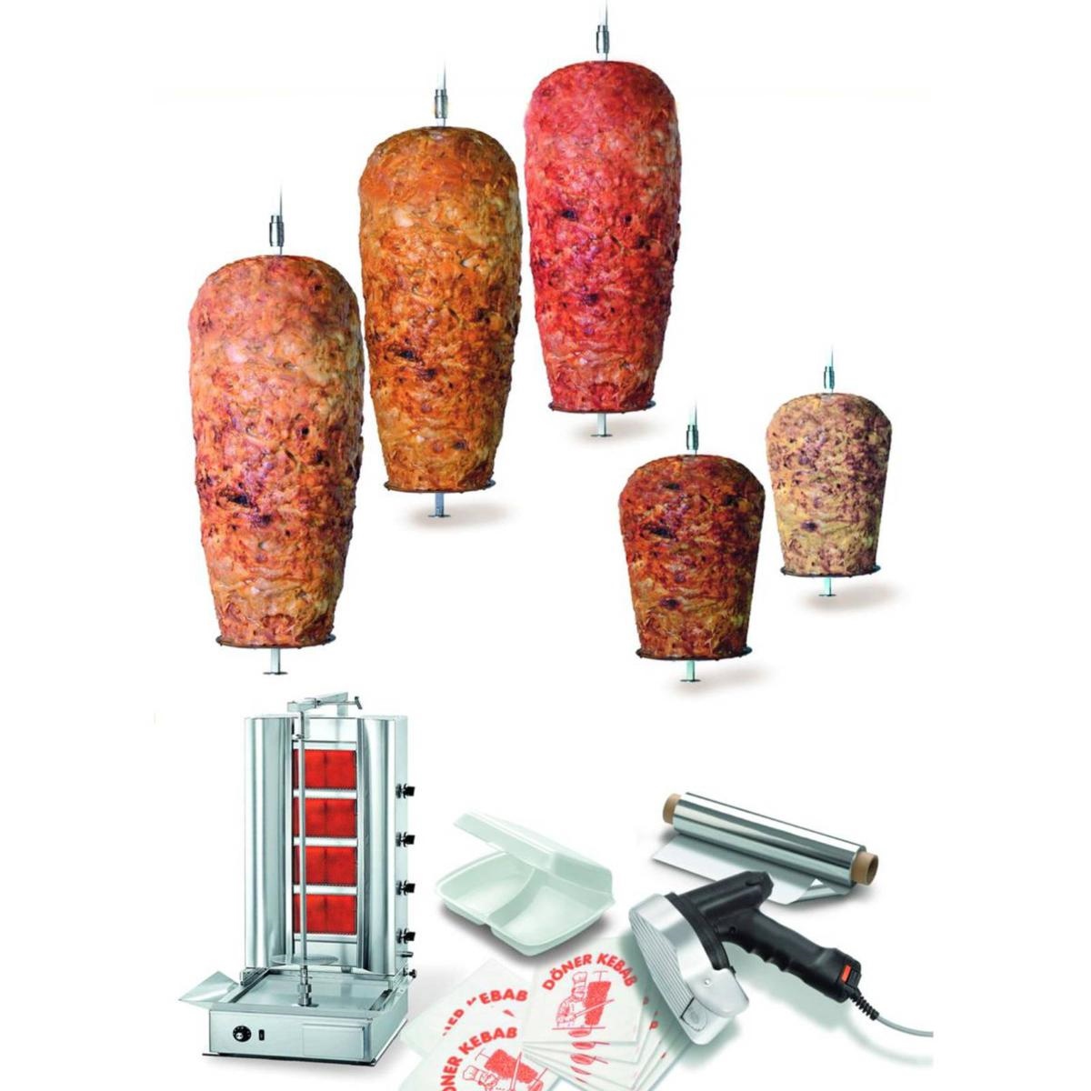 Spiedo di kebab congelato prodotto in impianti di produzione all'avanguardia, preparato con spezie di alta qualità e marinature delicate.
