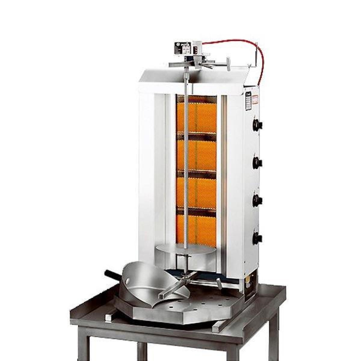 La Macchina per Kebab MD4 a Gas MPra è dotata di bruciatori a gas efficienti e regolabili, questa macchina assicura una cottura uniforme della carne, mantenendo il gusto autentico e una doratura perfetta. Con una struttura robusta e facile da pulire, la Macchina per Kebab MD4 è progettata per garantire un utilizzo sicuro e un’elevata resistenza nel tempo.