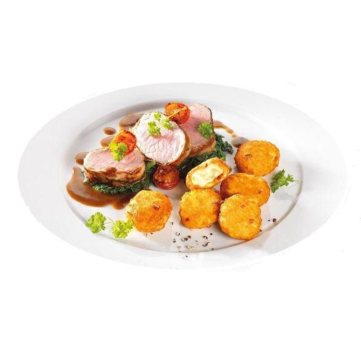 Massimo gusto in formato minimo! Vi presentiamo una nuova specialità direttamente dalle Alpi! Perché non sbalordire i vostri ospiti con qualcosa di straordinario? Questi gustosi Bocconcini di rösti con esclusivo formaggio di montagna del Vorlaberg e speck di prosciutto tirolese originale sono la soluzione che fa per voi. Hanno un gusto irresistibile, si preparano velocemente e si dividono in comode porzioni per ogni occasione.