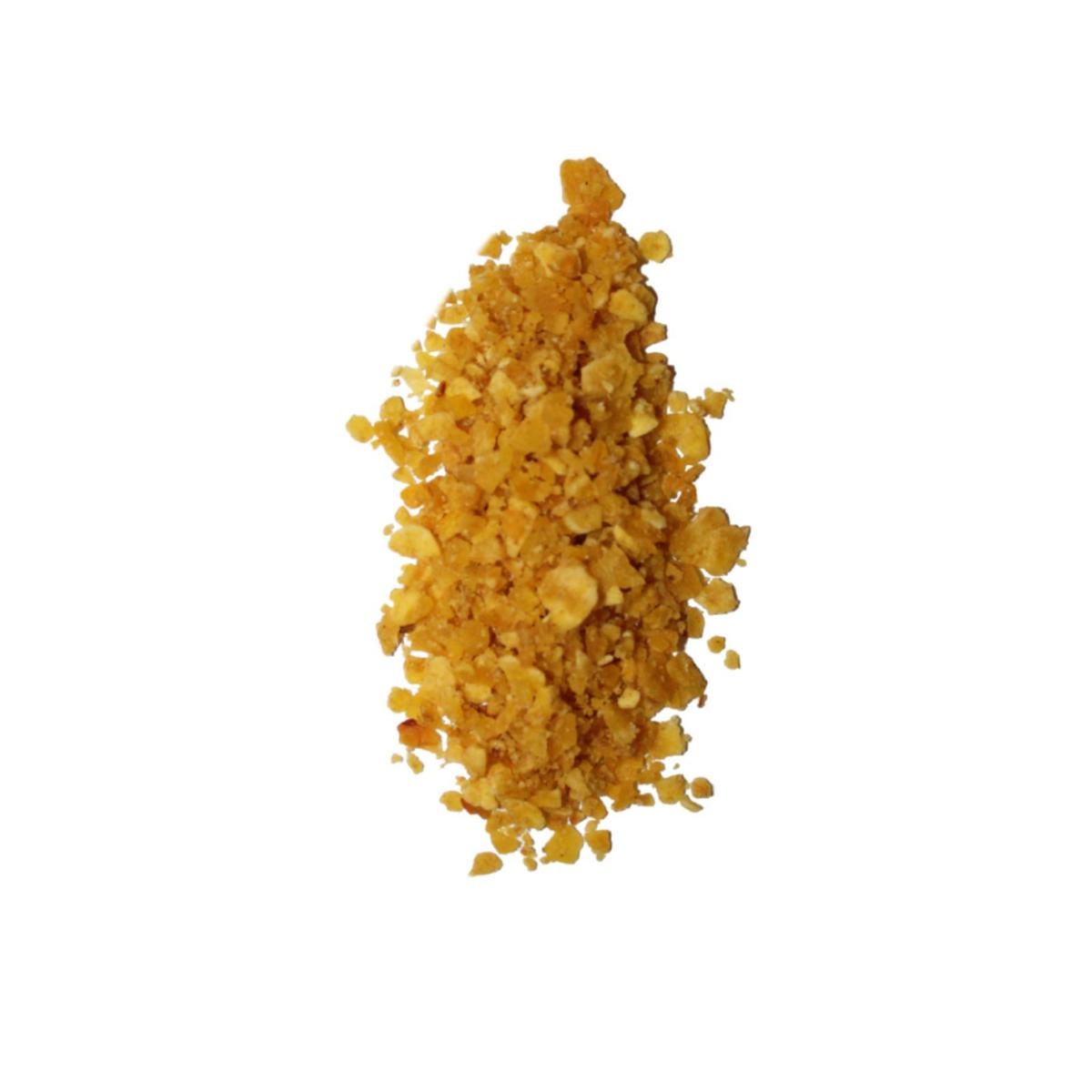 Musae Crunch Hot è una granella croccante di platano verde e peperoncino, dal gusto deciso e leggermente piccante, pensata per trasformare ogni piatto in un'esperienza unica. La sua consistenza croccante e il profumo esotico la rendono perfetta per aggiungere un tocco di creatività e carattere a un’infinità di preparazioni: dalle insalate ai risotti, dai tacos ai poke bowl, fino a zuppe, uova, tartare e piatti fusion.