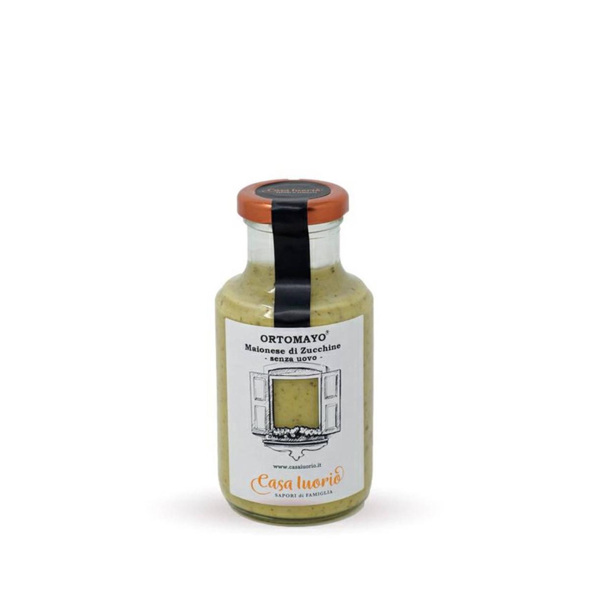 Maionese vegana di zucchine, varietà San Pasquale, che si presentano lunghe e dal colore verde scuro – 250 ml. Fatta con ortaggi di prima scelta e olio extra vergine di oliva.
