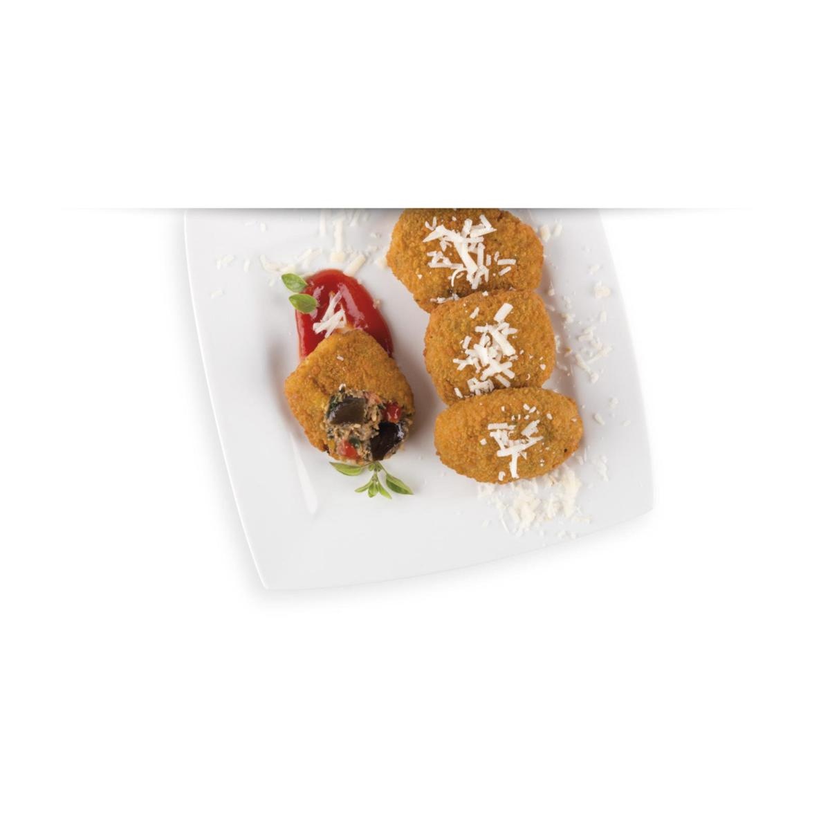 Croccanti bocconcini di melanzane, pomodoro, basilico e parmigiano.