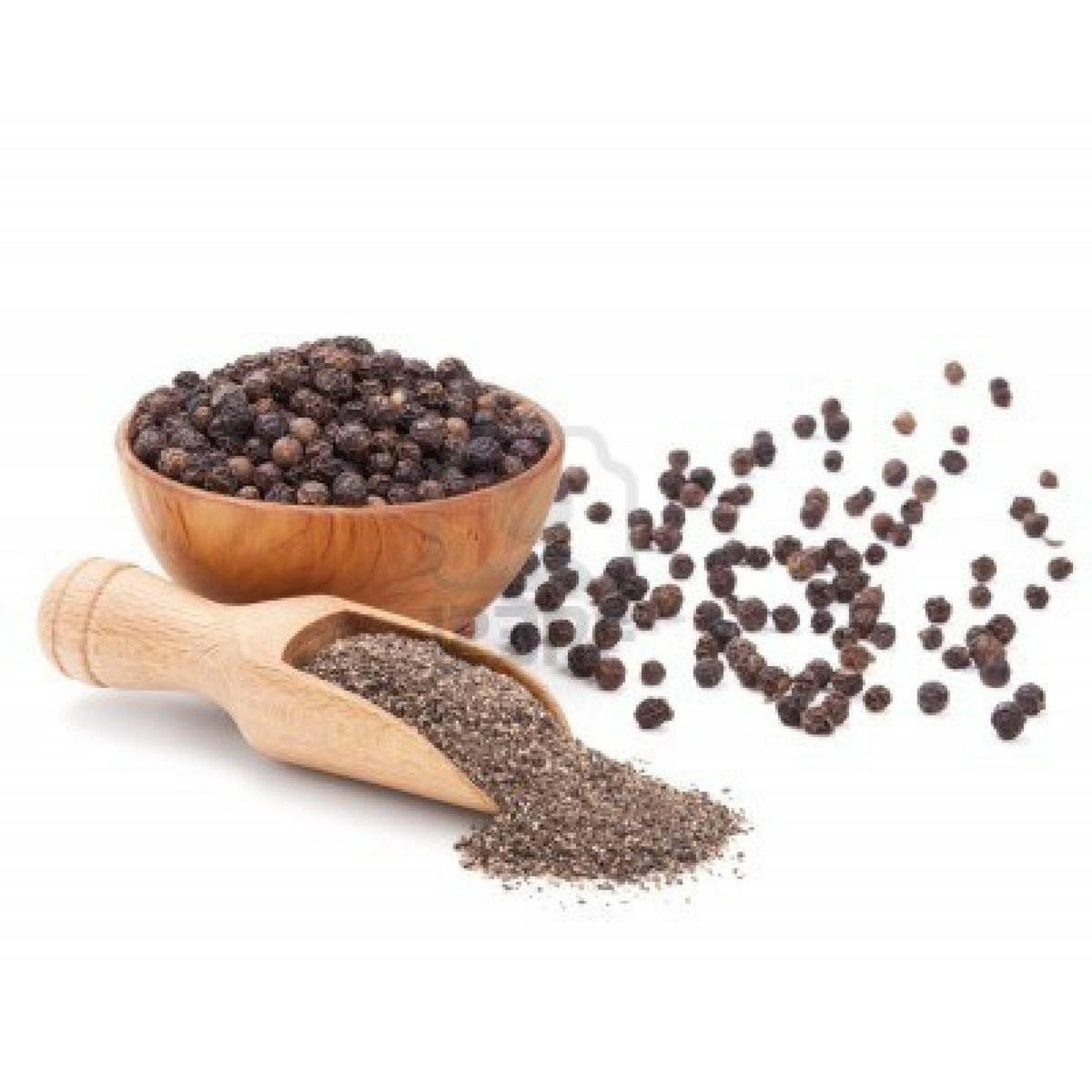 I grani di pepe nero sono i frutti di una pianta, Piper Nigrum, sbollentati e poi fatti essiccare al sole. Il Pepe è conosciuto in tutto il mondo e, in grani o in polvere, è la spezia per antonomasia. Insaporisce moltissime pietanze ed aromatizza con decisione carne e pesce ma anche pastasciutta, zuppe e risotti. Ottimo anche per dare un sapore più deciso ai formaggi e alle verdure dolci come finocchi, carote e piselli.