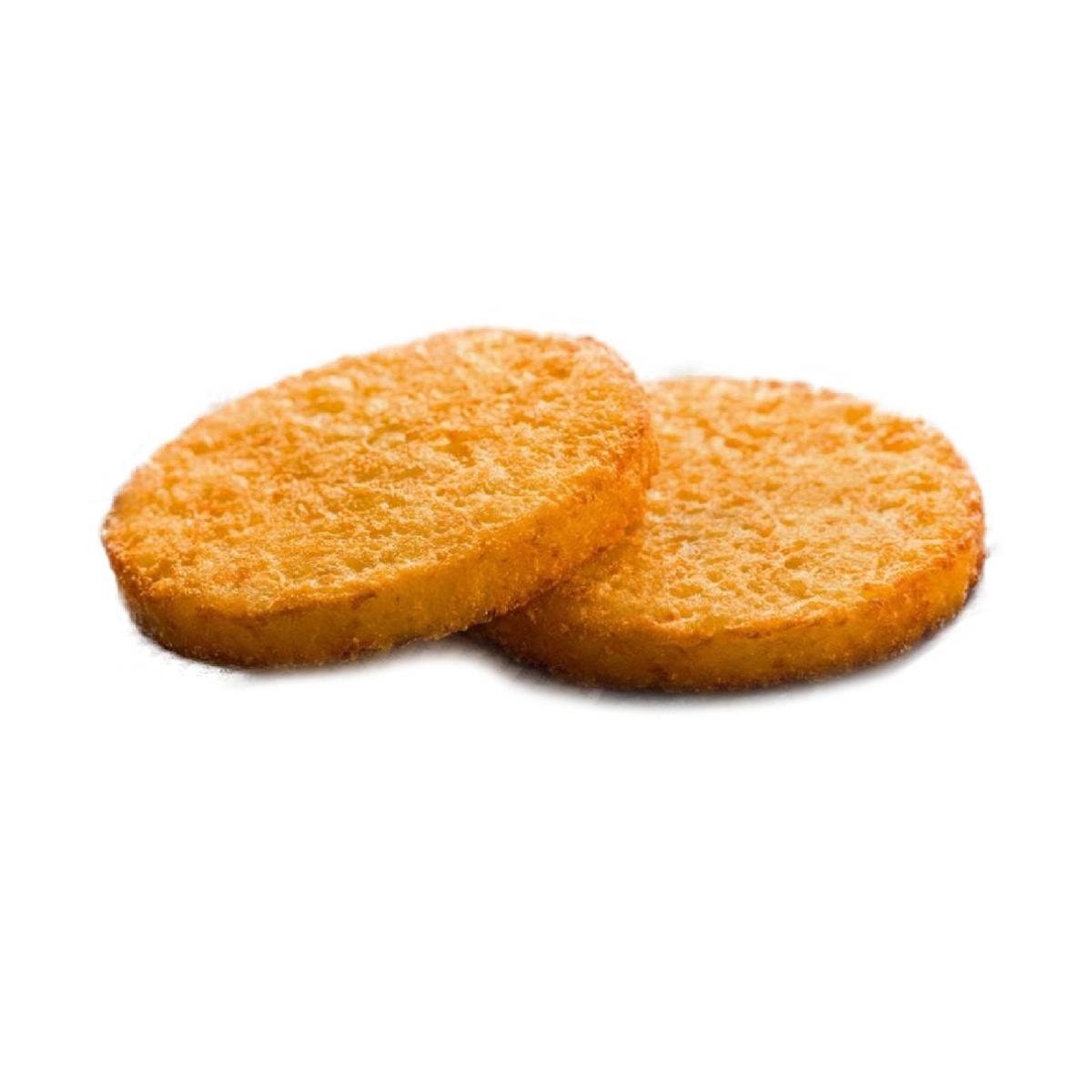 Medaglioni piatti realizzati con patate finemente tagliate, cipolle e un mix di erbe selezionate. Si sposano con qualsiasi tipo di piatto.