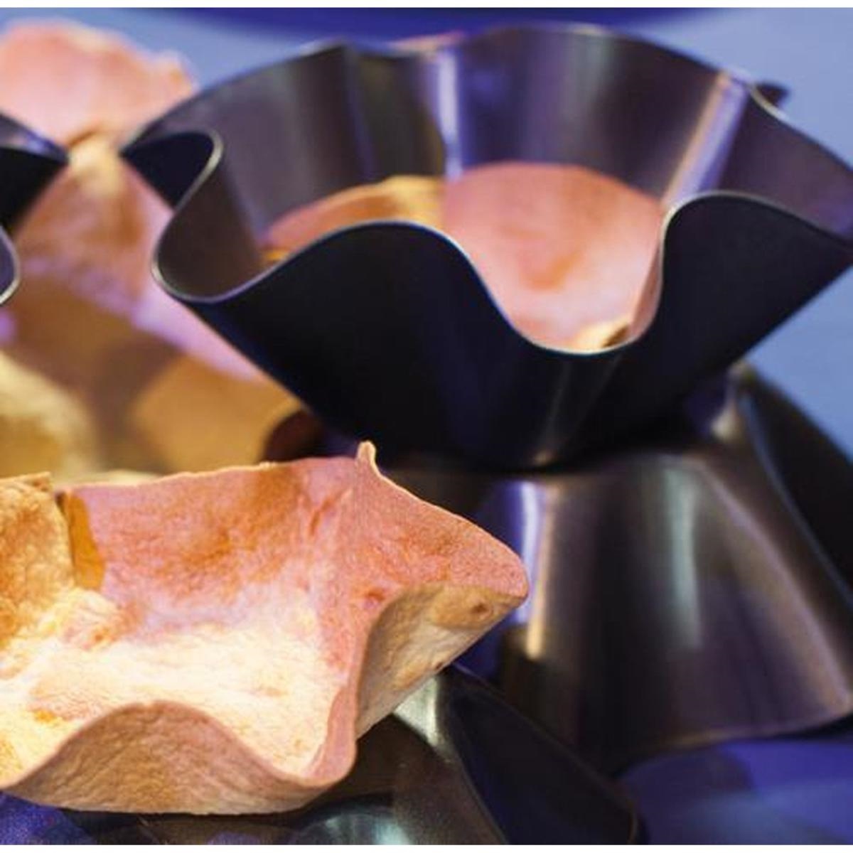 Un accessorio che ti consente di realizzare croccanti gusci con le nostre tortillas, senza bisogno di friggerle. Per servire insalate, crema guacamole o altri piatti freddi. Dimensioni d. 23 h 8.5 cm.