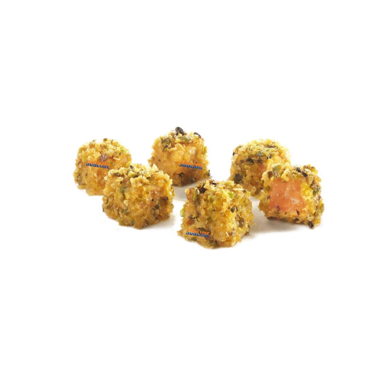 Deliziosi bocconcini di Salmone al Pistacchio Croccanti e genuini. I nuovi “Salmon Crispy Bites” di Sublime sono il finger food perfetto per sedurre i gusti dei più giovani. La panatura con pistacchi aggiunge un tocco di originalità e di gusto in più, croccanti all'esterno e morbidi all'interno, perfetti per accompagnare aperitivi con salse o per dare un tocco di sapore alle tue insalate. Regala ai tuoi clienti un'esperienza di gusto Sublime!