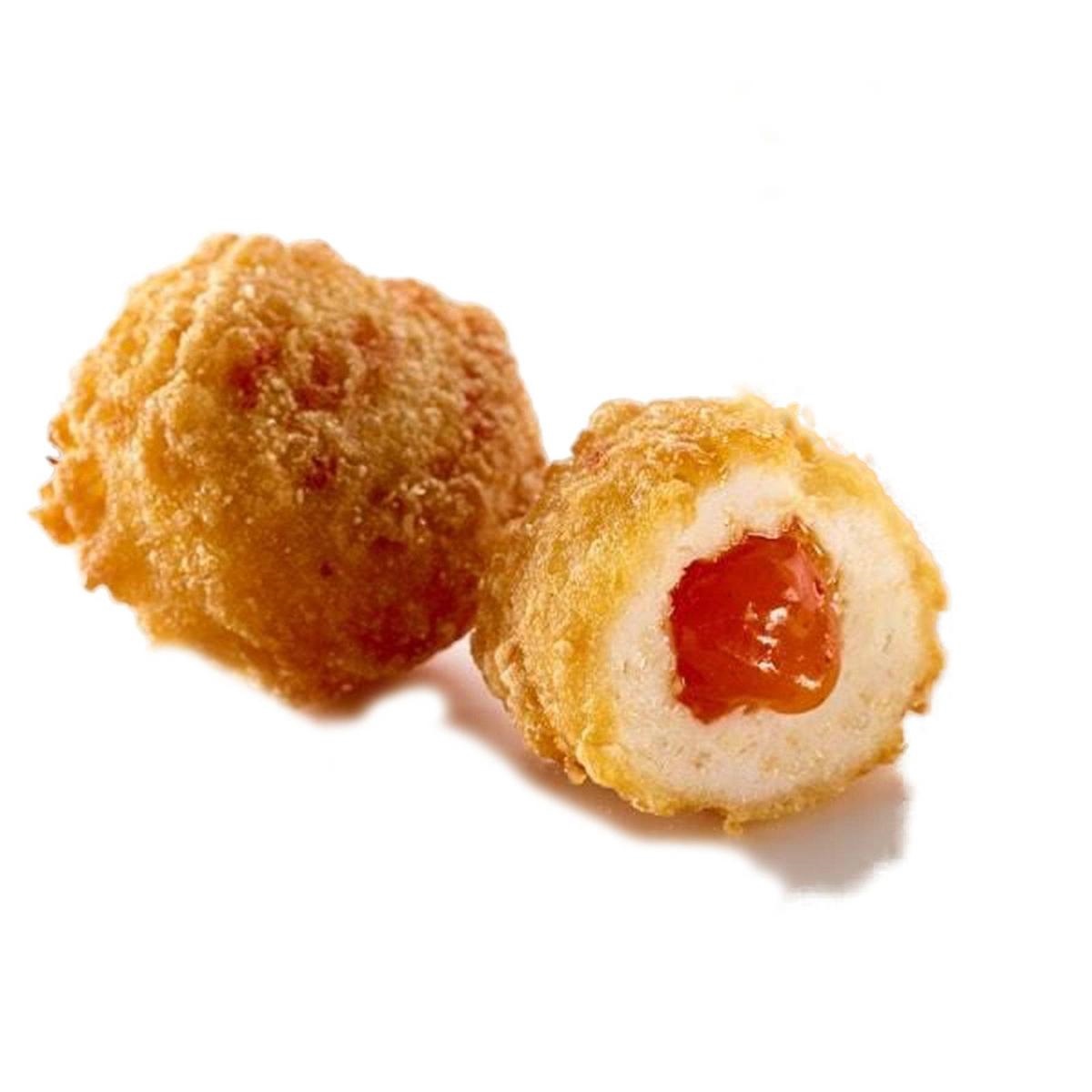 Bocconcini a base di filetto di pollo con cuore di salsa Chili dolce, avvolti in una croccante panatura, prefritti e surgelati. Concept innovativo con un sorprendente contrasto di sapori e consistenze. Associazione tra dolce e salato per un viaggio tra i sapori.
