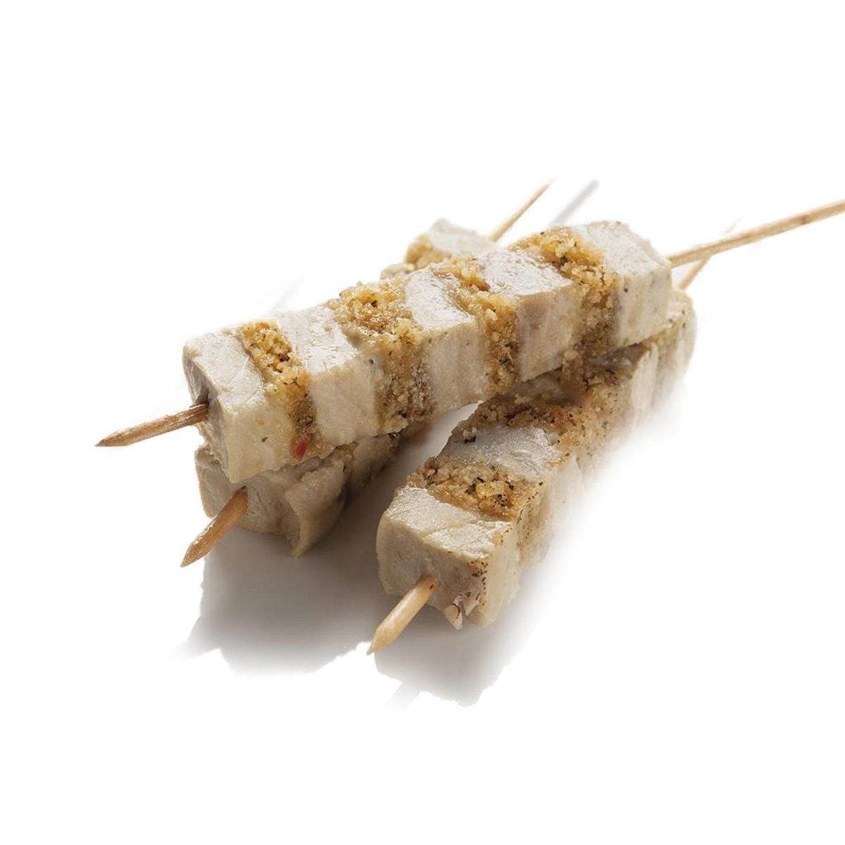 Realizzato con vero filetto di tonno surgelato a bordo a temperature molto basse in modo da preservarne al massimo la freschezza e la succosità. È un piatto tipico della cucina giapponese che prevedel’uso esclusivo di pesci o carni freschissime, da qui questa parola sta ad indicare materie prime di elevatissima qualità. I nostri cubetti di tonno vengono delicatamente accompagnati nello spiedo con pane bianco profumato al cappero e pomodorino, la loro forma permette una cottura perfetta ed omogenea. Ideale per la cottura veloce sulla piastra Teppanyaki o sulla classica griglia, potete gustarlo puro come street food oppure per dare un tocco di creatività alla classica grigliata di pesce.